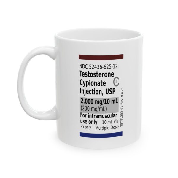 Description: Elevate your coffee game with a mug that’s as bold as you are! The Testosterone Cypionate Injection Mug is the ultimate gift for fitness enthusiasts, gym lovers, and anyone who appreciates a touch of quirky humor. Designed to look like a medical bottle label, this unique mug is sure to be a conversation starter whether you’re at home, the office, or your local gym.